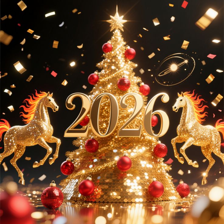 Картинки з прийдешнім Новим 2026 роком Коня – з символом року