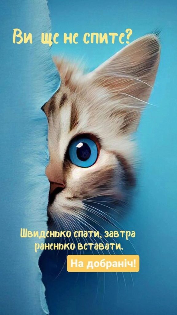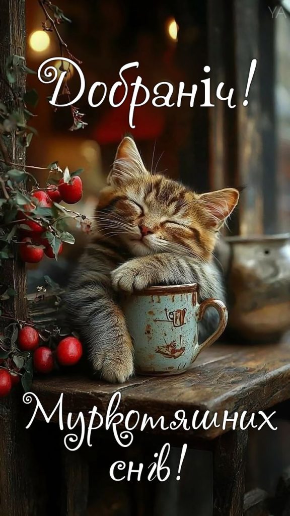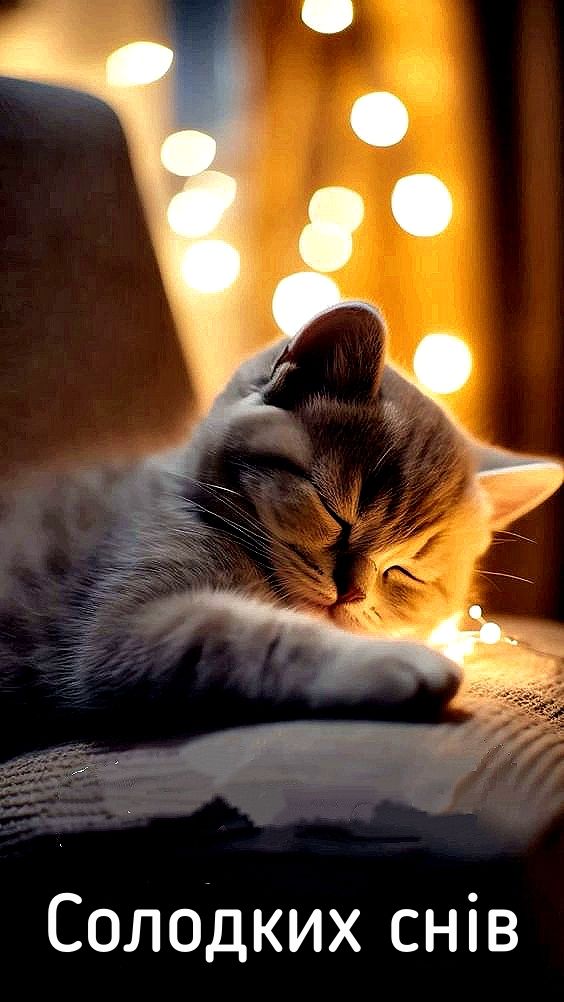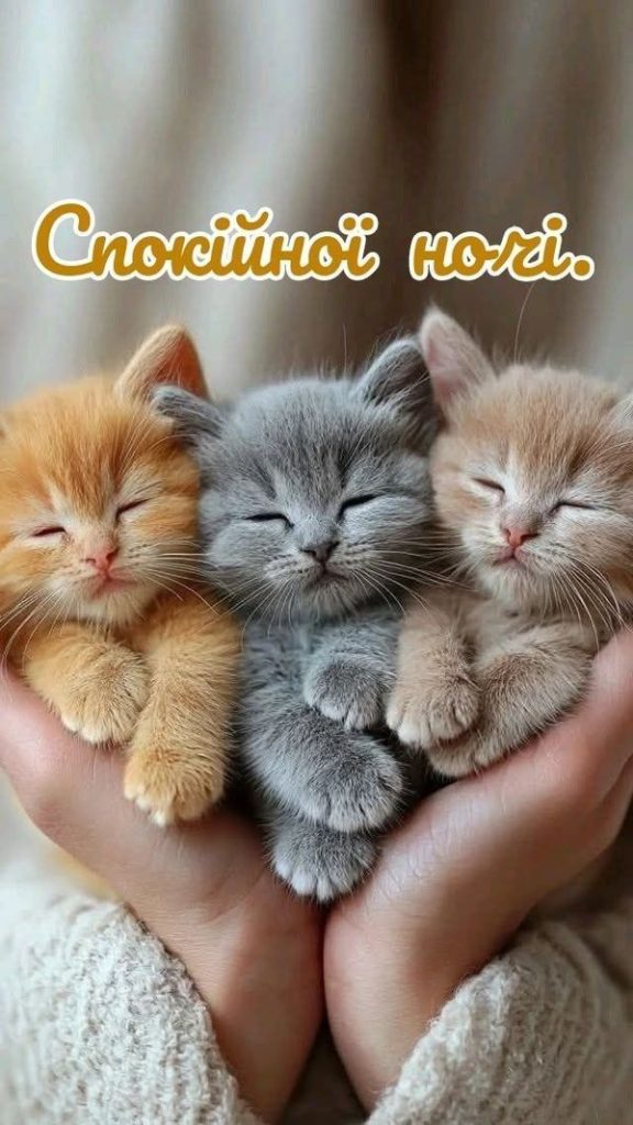 І, звичайно, жоден огляд картинок для побажань не буде повним без згадки головних зірок інтернету. Картинки “На добраніч, солодких снів” з котиками — це безпрограшний та універсальний варіант, здатний розтопити практично будь-яке серце. Кішки та кошенята міцно асоціюються з теплом, домашнім затишком, відпочинком і, звісно ж, сном.