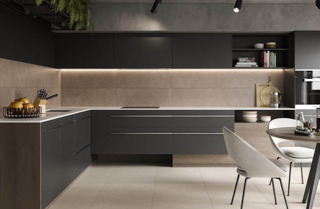 Завдяки сучасним технологіям виробництва, керамічна плитка може імітувати будь-яку фактуру, зберігаючи свої унікальні захисні властивості. Це робить її ідеальним кандидатом для оформлення робочої зони в будь-якому стилі — від затишного провансу до суворого хай-теку.