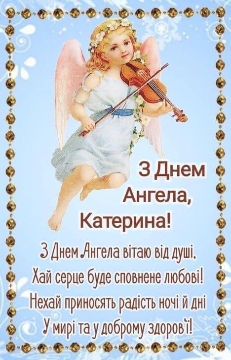 Дорога наша Катрусю! Від щирого серця вітаю тебе з твоїм днем ангела! 7 грудня – чудовий привід ще раз сказати тобі, яка ти світла й чудова людина. Нехай свята Катерина завжди буде твоєю невидимою заступницею та помічницею. Бажаю, щоб у твоєму житті було якомога більше тепла, щирих усмішок, вірних друзів і справжнього, непідробного щастя. Нехай віра допомагає долати будь-які труднощі, а надія та любов ніколи не покидають твоє серце!